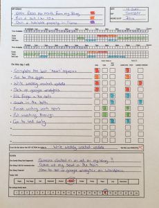 This section of the tracker is where you put the areas of your life you want to focus on. I have allowed space for five items here. Any more than five and you are not focussed! Arguably you could only include one item here, it all depends what you want to fix! Whatever you put as your focus I would ask you to consider including self-care. Life is so pressured and we are all so hard on ourselves. It is easy to forget that we have a responsibility to look after our mental well being.